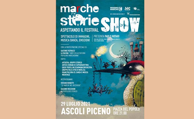 ASCOLI PICENO – Giovedì 29 luglio, alle ore 21, prenderà il via da Piazza del Popolo “MArCHESTORIE Show”, lo spettacolo itinerante che toccherà sei grandi piazze marchigiane: dopo Ascoli, il 18 agosto a Fermo, il 22 agosto a Senigallia, il 25 a Macerata, il 29 a Fano e il 1 settembre a Civitanova Marche. “MArCHESTORIE Show”, farà da apripista a “MArCHESTORIE – Racconti e tradizioni dai borghi in festa” che si svolgerà nei borghi marchigiani dal 2 al 19 settembre 2021. Raccontare le Marche attraverso i suoi borghi, i suoi sapori, le sue vicende millenarie ma soprattutto le sue storie. MArCHESTORIE Show, non sarà solo uno spettacolo, ma una vera e propria festa tutta marchigiana.