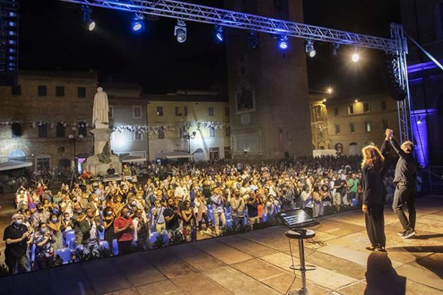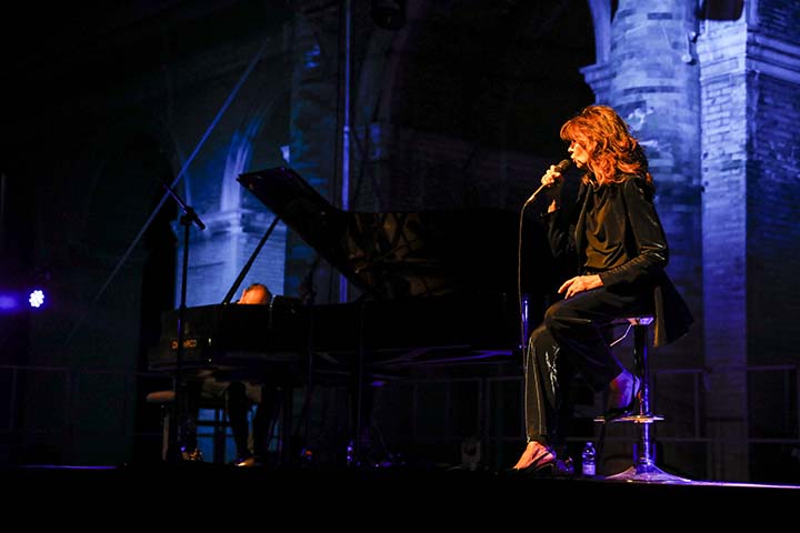 RECANATI – «É bellissimo essere qui con voi in questa piazza meravigliosa, Recanati è una perla dell’Italia» ha detto al pubblico di “Lunaria” Alice, l’amatissima cantautrice che ha omaggiato l’amico e artista scomparso nel maggio scorso, con il concerto “Alice canta Battiato”. Una grande ed emozionante serata di chiusura di Lunaria, la rassegna estiva di Musicultura organizzata con il Comune di Recanati che ha visto l’esibizione della raffinata artista accompagnata al pianoforte dal maestro Carlo Guaitoli, per tanti anni collaboratore di Franco Battiato, in qualità di pianista e direttore d’orchestra, nella suggestiva Piazza Giacomo Leopardi. Con autenticità e grande eleganza Alice ha omaggiato l’artista siciliano con un arrangiamento in versione acustica dei suoi brani e delle canzoni nate dalle loro numerose collaborazioni a partire dal 1980.