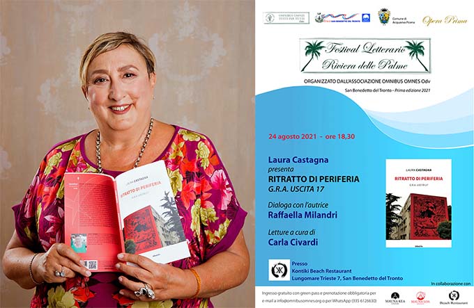 SAN BENEDETTO DEL TRONTO – Continua la serie di appuntamenti del Festival Letterario Riviera delle Palme organizzato dalla Omnibus Omnes, con Patrocinio dei Comuni di San Benedetto del Tronto e di Acquaviva Picena. L’appuntamento del 24 agosto, alle ore 18.30 presso lo Chalet Kontiki sul Lungomare di San Benedetto, è con la presentazione in anteprima nazionale della prima opera di Laura Castagna, “Ritratto di Periferia”, edito da Albatros. Laura Maria Castagna vive ad Acquaviva Picena, ha esercitato la professione di logopedista presso l’Ospedale Madonna del Soccorso di San Benedetto, ed è stata docente alla Università Politecnica delle Marche. Il suo libro racconta la sua esperienza tra il quartiere romano di Tor Bella Monaca e il borgo medievale di Acquaviva, trovandone i contrasti e le similitudini; narra altresì il suo impegno sociale all’interno dei collettivi scolastici e poi in gruppi di solidarietà volti a proteggere gli individui socialmente deboli. Un testo avvincente tra riflessioni profonde, a cavallo tra gli anni ’80 e i tempi attuali. A presentare sarà Raffaella Milandri, letture a cura di Carla Civardi. Sono obbligatori la prenotazione presso la Omnibus Omnes (whatsapp 3356126630) e il Green Pass.