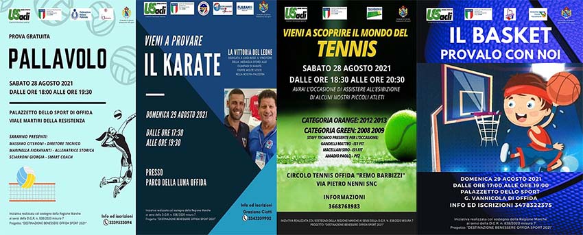 OFFIDA – “Settembre & Sport” sarà una vera e propria anteprima di quello che accadrà proprio nel prossimo mese di settembre, quando le attività sportive riprenderanno a pieno regime. Nel prossimi fine settimana, ad Offida, sarà possibile praticare e conoscere meglio tennis, basket, pallavolo e karate, grazie alle associazioni del territorio ossia Circolo Tennis Remo Barbizzi, Basket Offida, Offida Volley e Master Karate Offida Fitness Club.