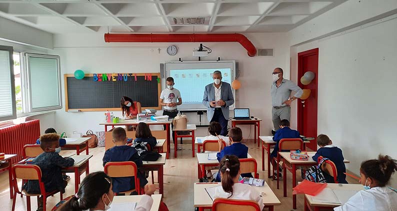 Il saluto del sindaco Bravi agli alunni. Il Comune si aggiudica un nuovo finanziamento regionale per gli impianti di ventilazione meccanica nelle scuole –
