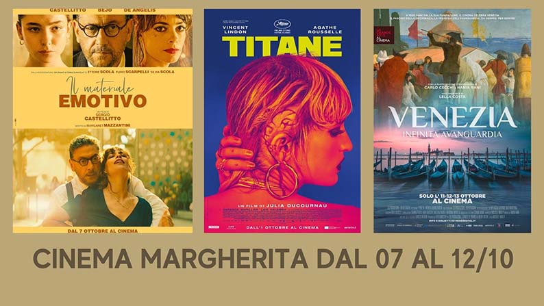 A chiudere la settimana ci sarà il ritorno de “La grande arte al Cinema” la rassegna che ha portato al centro l’Arte in spettacolari documentari capaci di entrare nei segreti linguaggi estetici di tutti i tempi. Lunedì e martedì sarà dedicato a Venezia (e la sua) infinita avanguardia di Michele Mally. É consigliata la prenotazione da effettuare, con semplicità sul sito www.cinemamargherita.com.
