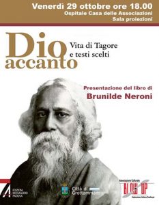 GROTTAMMARE – Venerdì 29 ottobre alle ore 18, presso la sala proiezioni dell’Ospitale Casa delle Associazioni di Grottammare, Brunilde Neroni presenta il libro “Dio accanto. Vita di Tagore e testi scelti”, edito da Edizioni Messaggero Padova. Rabidranath Tagore (Calcutta 1861-1941), il più noto poeta indiano tra Ottocento e Novecento nonchè Premio Nobel per la letteratura nel 1913, viene presentato in questa raccolta in una delle sue tematiche ricorrenti: il rapporto con Dio. Un Dio accanto, un Dio vicino che ha cura di ogni pensiero, di ogni desiderio e che soprattutto sa placare ogni pena del poeta. L’autrice Brunilde Neroni, italianista ed orientalista, ha tradotto i maggiori poeti della tradizione sanscrita e pubblicato una traduzione esemplare del Bhagavadgita. Dal 1985 traduttrice del grande Rabidranath Tagore, dall’originale bengali, lo ha pubblicato presso le più note case editrici italiane. Nota ecologista e pacifista ha fatto conoscere anche inediti di Gandhi. È stata insignita, nel maggio del 2008, della Ruota dell’India, massima onorificenza indiana mai prima concessa a una donna. La Consigliera Martina