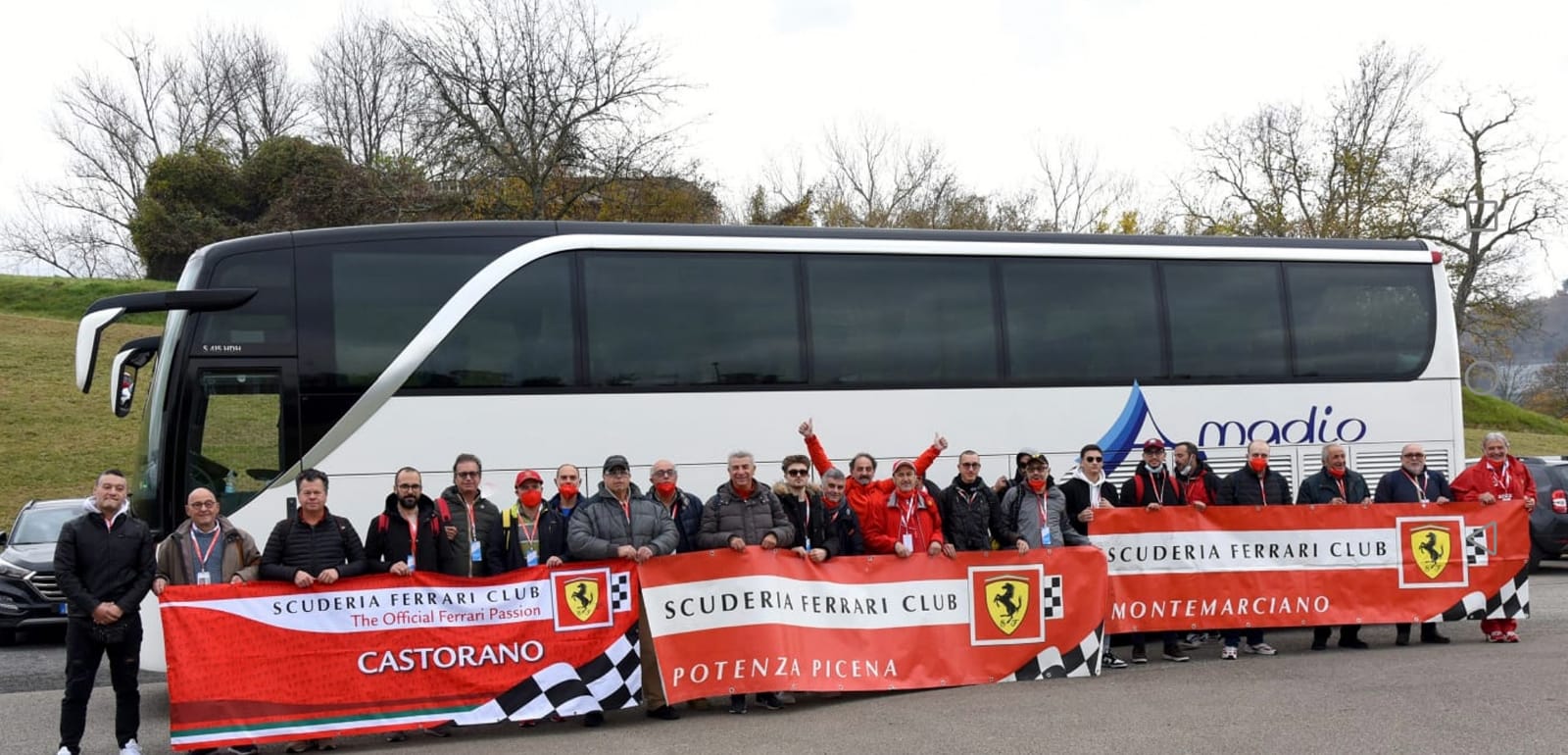 CASTORANO – Continua la programmazione condivisa dei tre Club Ferrari delle Marche, che sono tra i primi 30 nella classifica del Ranking Mondiale SFC, con la trasferta al Mugello per la consueta festa di fine stagione. SFC Castorano, SFC Montemarciano, SFC Potenza Picena hanno organizzato insieme la trasferta in pullman granturismo per sottolineare il loro essere Ferrari e per rimarcare la grande amicizia e stima che regna tra i tre sodalizi Per tutti lo show riservato dalla casa di Maranello è stato un paradiso di emozioni senza fine, una meraviglia per la vista e una alternanza di sound unico per l’udito.