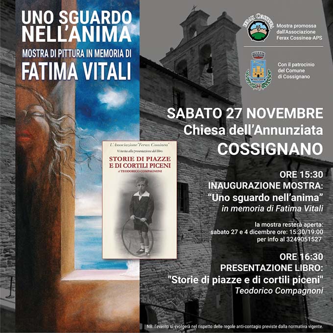 COSSIGNANO – Sabato 27 novembre alle ore 16.30, presso la Chiesa dell’Annunziata, avrà luogo la presentazione libro “Storie di piazze e di cortili piceni” di Teodorico Compagnoni. Si tratta di un autentico viaggio nelle tradizioni popolari, un eccellente lavoro di ricerca in cui l’autore è stato etnografo, etnologo, antopologo e al quale va soprattutto il merito di avere “fermato nel tempo” testimonianze orali, la maggior parte delle quali inedite, che altrimenti sarebbero andate perdute. Il libro racconta la storia delle tradizioni popolari del Piceno ma, tiene a precisare Compagnoni, non “vuole essere un trattato o una summa, bensì una paziente raccolta di una parte delle tradizioni della nostra gente, spesso tramandate oralmente”. Da sottolineare la presenza nel libro di “Perle di saggezza popolare”, ovvero i proverbi, un’appendice davvero molto gradita perché i proverbi, come dice giustamente l’autore “sono il sapere del popolo tramandato nel tempo, linfa che proviene dalle radici che non gelano e resistono agli insulti della globalizzazione”. Nato ad Acquaviva Picena nel 1954, dove tuttora vive, il prof.Compagnoni insegna antropologia culturale, storia delle tradizioni popolari e storia delle religioni. La presentazione sarà introdotta alle ore 15.30 dalla mostra di pittura “Uno sguardo nell’anima” in memoria di Fatima Vitali, promossa dall’Associazione “Ferax Cossinea Aps” con il patrocinio del Comune di Cossignano. La mostra resterà aperta sabato 27 e sabato 4 dicembre in orario 15.30- 19. Info:3249051527. L’evento si svolgerà nel rispetto delle regole anti contagio previste dalla normativa vigente.