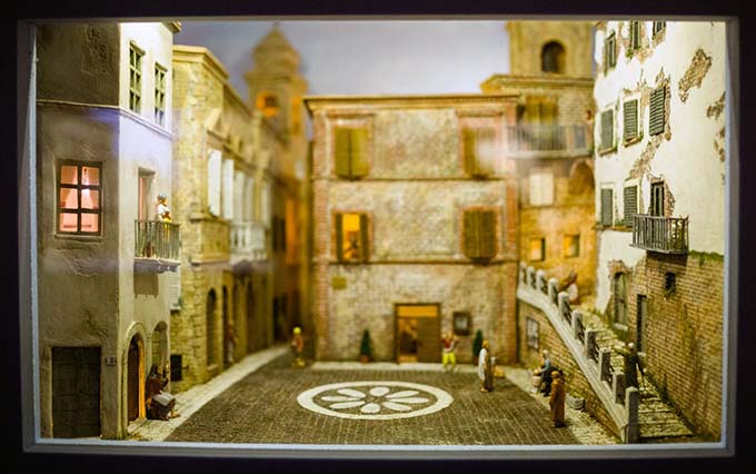 Foto del presepe artistico che riproduce Piazza dell'Aquila a Monteprandone