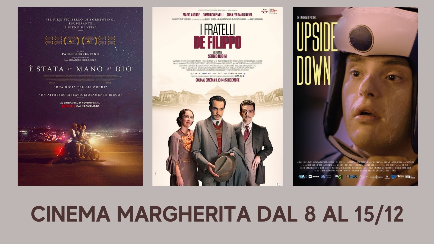 CUPRA MARITTIMA – Con orgoglio il Cinema Margherita annuncia la programmazione della settimana che vede tra i tre titoli, il candidato agli Oscar 2022 per l’Italia “É stata la mano di Dio” di Paolo Sorrentino, già premiato quest’anno a Venezia 78 con il Gran Premio della Giuria e il Premio Marcello Mastroianni al giovane protagonista Filippo Scotti. Il film inizialmente messo in cartellone, è stato poi dovuto annullare per scelte distributive che prediligevano i multiplex e le grandi piazze. L’orgoglio quindi è dato nel dare la possibilità al pubblico di vedere un film definito tra i più belli dell’autore, già premiato con un Oscar per “La grande bellezza”, sul grande schermo, ma anche nell’essere l’unica cittadina sotto i 40.000 abitanti alla quale è stata concessa la copia. Il film autobiografico del regista racconta di Napoli oltre che le sue tragedie personali.