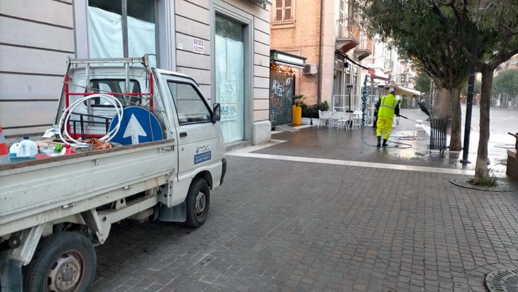 SAN BENEDETTO DEL TRONTO – É partita stamane l’operazione per il decoro urbano condotta congiuntamente dal personale comunale e da quello delle società esterne (Picenambiente, CIIP, Azienda Multi Servizi, CPL Concordia). Nella prima giornata ci si è concentrati sull’area pedonale del centro e vie limitrofe con pulizia e lavaggio di strade, panchine e cestini portarifiuti, pulizia della rete fognaria e di caditoie, controllo delle lampade e pulizia di corpi illuminanti e pali, rifacimento della segnaletica orizzontale e verticale, chiusura buche, potatura e sistemazione delle aiuole. L’intervento coordinato richiederà nella giornata di domani l’interdizione al transito e alla sosta di via Galilei. L’operazione riprenderà lunedì 20 dicembre con la chiusura al transito e alla sosta di via Mazzocchi.