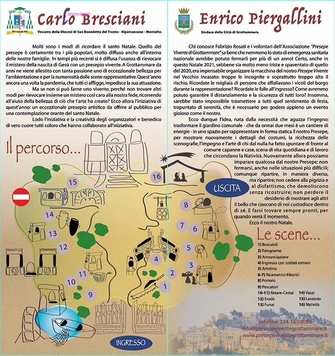 GROTTAMMARE – É in dirittura di arrivo l’allestimento del primo Presepe Artistico nel Giardino Comunale di Palazzo Ravenna, che a partire da domenica pomeriggio, 19 dicembre, sarà pronto per essere ammirato in qualsiasi ora del giorno e della sera. I volontari dell’associazione Presepe Vivente, che da giorni lavorano alle scene, riproducendo ambienti ed atmosfere tipiche della natività, hanno ricreato una piccola Betlemme, da attraversare e ammirare nei suoi tanti particolari, fino al 9 gennaio con ingresso libero. L’iniziativa nasce dallo stop imposto dalla pandemia alla rappresentazione del Presepe Vivente che dal 2004 segnava le festività di fine anno a Grottammare, conducendo migliaia di visitatori nel centro storico. Se non nelle dimensioni, sicuramente la cura nella realizzazione è sempre la stessa: 16 scene raccontano con dovizia di particolari la vita e i personaggi del tempo, con fedeli riproduzioni di abiti, strumenti di lavoro, interni. Hanno collaborato alla riuscita dell’allestimento numerose attività economiche e commerciali del territorio.