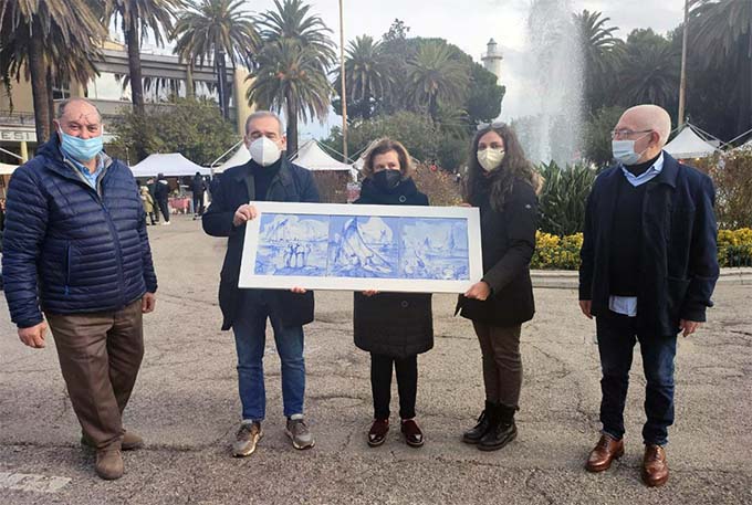 SAN BENEDETTO DEL TRONTO – La città di San Benedetto del Tronto ha ricevuto in dono un’opera in ceramica da parte degli organizzatori della manifestazione “L’Antico e le Palme”, rappresentata da Gianni Brandozzi. L’opera, composta da tre pannelli e firmata dal ceramista marchigiano Enzo Marinelli, rappresenta una scena di vita marittima ed è stata recuperata da una collezione privata proveniente dalla riviera e recentemente messa in vendita. Il dono è stato consegnato stamane nelle mani del sindaco Antonio Spazzafumo in Piazza Giorgini, nel vivo della manifestazione dedicata all’antiquariato, e alla cerimonia hanno preso parte anche gli assessori alle attività produttive Laura Camaioni e alla cultura Lina Lazzari.