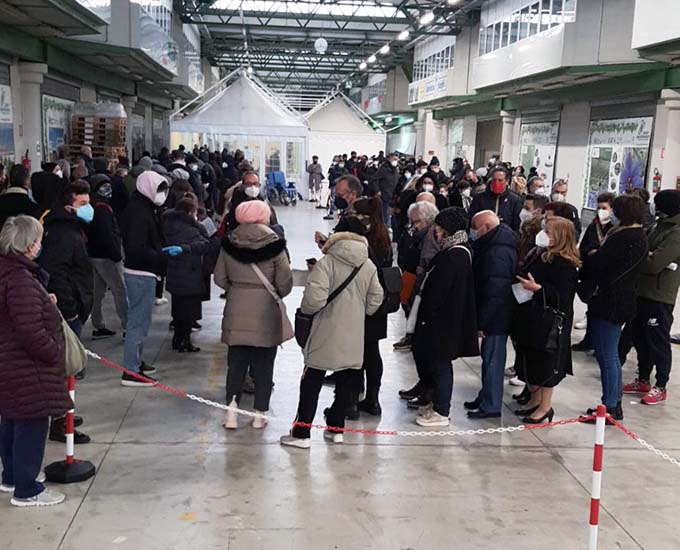 SAN BENEDETTO DEL TRONTO – L’amministrazione comunale comunica che il percorso di accesso all’hub vaccinale del Centro Agroalimentare è stato modificato affinché gli utenti in attesa possano sostare al coperto, al riparo dal freddo. Questa modifica è stata possibile grazie alla collaborazione tra i gestori del Centro Agroalimentare e la direzione dell’Area Vasta guidata da Massimo Esposito. Le parti si sono infatti accordate sulla ristrutturazione del percorso dell’hub in modo da ridurre al minimo il disagio degli utenti in attesa. L’amministrazione comunale ha assistito la realizzazione delle modifiche agevolando lo svolgimento delle operazioni di pulizia e rinnovo della segnaletica a terra.