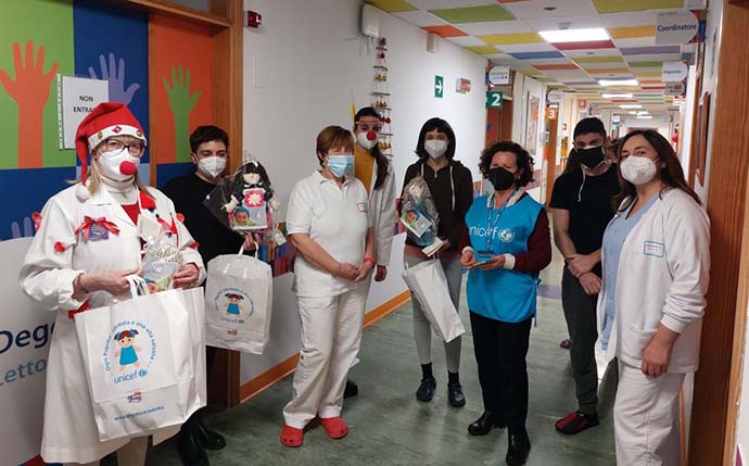 SAN BENEDETTO DEL TRONTO – In occasione dell’Epifania, le volontarie del Comitato Provinciale Unicef e dell’associazione Anla-Lav Marche, hanno voluto regalare, anche grazie alla presenza dei clown-animatori, un sorriso ai bambini ricoverati presso il reparto di pediatria dell’ospedale “Madonna del Soccorso” di San Benedetto del Tronto e hanno consegnato loro le “Pigotte sospese”. Alcuni donatori hanno versato il corrispettivo delle bambole di pezza Unicef ed i volontari hanno voluto regalare, a bambine e bambini malati, le Pigotte adottate. Con la donazione per una Pigotta sospesa si fanno felici tanti bambini: quelli lontani dei paesi a medio e basso reddito e quelli vicini del nostro territorio che si trovano in situazioni difficili e di disagio. Quest’anno, anche i fondi raccolti grazie alla “Pigotta sospesa”, andranno a sostegno della Campagna dell’Unicef “Vacciniamo il mondo” per garantire un’equa distribuzione dei vaccini anti Covid-19 ai paesi a medio o basso reddito.