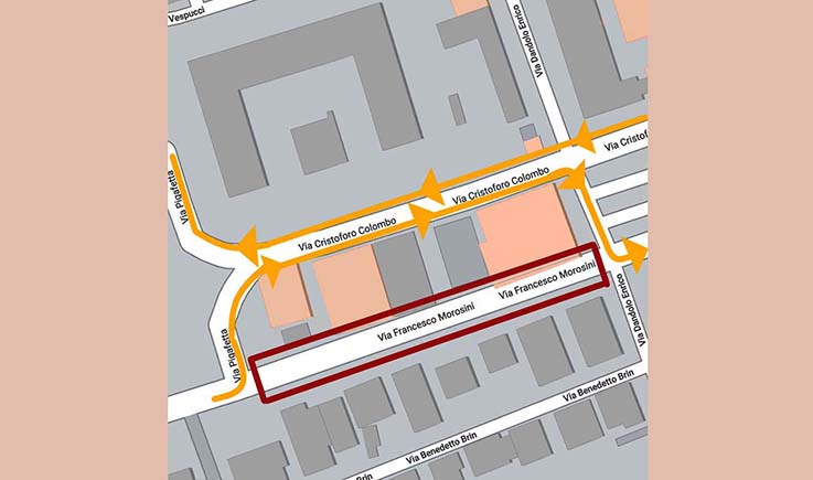 SAN BENEDETTO DEL TRONTO – A partire da mercoledì 23 febbraio il tratto di strada di via Morosini compreso tra via Pigafetta (il bivio a sud dello stadio “Ballarin”) e via Dandolo sarà interessato da lavori di scavo commissionati dalla Ciip spa. Fino a fine lavori, il transito nel segmento sarà interdetto al traffico veicolare e ciclopedonale. Interdetto al transito ciclopedonale anche il tratto di viale Colombo compreso tra via Pigafetta e via Dandolo. Per l’attraversamento dell’area, sarà infatti predisposta una canalizzazione del traffico in due sensi di marcia, nord-sud e sud-nord, su viale Colombo e sarà temporaneamente invertito il senso unico del tratto di via Pigafetta compreso tra via Morosini e viale Colombo, in modo da consentire agli autoveicoli che provengono da nord, cioè da via Morosini, di svoltare verso est e imboccare viale Colombo. Nel tratto di viale Colombo interessato dalle modifiche, insisterà inoltre un divieto di transito per tutti i veicoli di massa a pieno carico superiore alle 3,5 tonnellate e il limite di velocità per tutti gli altri mezzi sarà ridotto a 30 km/h. Infine, per tutta la durata dei lavori, sarà in vigore il divieto di sosta con rimozione forzata nel tratto interessato dai lavori di via Morosini, sul lato sud di via Pigafetta e nel tratto di viale Colombo compreso tra via Pigafetta e via Dandolo.