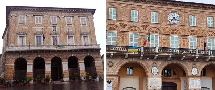 MACERATA – Le Amministrazioni comunali di Macerata e Civitanova hanno deciso di esporre sulla balaustra dei rispettivi palazzi comunali la bandiera dell’Ucraina in segno di profonda vicinanza per quanto sta accadendo in queste ore. I due sindaci Sandro Parcaroli e Fabrizio Ciarapica hanno espresso, a nome delle rispettive città, «una ferma condanna per l’invasione della Russia; una situazione drammatica e preoccupante per la democrazia e per i valori di pace e di libertà». La bandiera dell’Ucraina, adottata nel 1918, rappresenta il blu del cielo, a simboleggiare la pace, sopra il giallo dei campi di grano che testimoniano la prosperità. Parcaroli e Ciarapica hanno inoltre inviato una lettera alla presidente della Comunità Ucraina delle Marche Maryna But, per «mostrare la nostra completa disponibilità alle comunità ucraine di Macerata (232 persone) e di Civitanova (285 persone). Abbiamo chiesto alla presidente But di metterci in contatto con i suoi connazionali che vivono nelle nostre città nel caso ce ne fosse bisogno per qualsiasi motivo». «L’augurio è che venga posto fine a questo dramma che minaccia l’intera umanità e che avrà ripercussioni su tutti noi il più presto possibile; confidiamo che presto possano tornare il dialogo e la pace» hanno concluso i due primi cittadini.