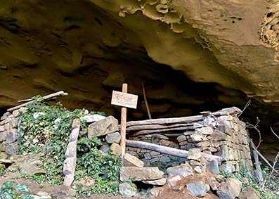 Poi, quando noti un nuovo corso d’acqua, quando ancora torni a stupirti per i disegni dalle curiose geometrie sui dorsi rocciosi e forse inizi a pensare che è ora di una breve pausa, ecco che tutto cambia e tutto dimentichi, e hai occhi e mente solo su quello che ti si sta rivelando. Sembra un frame cinematografico, lo scatto fotografico di un Aladino che si è nascosto tra le pieghe della montagna. Una grotta maestosa, anch’essa in arenaria, intarsiata con incredibili effetti “merletto”, lunga una sessantina di metri, che va in profondità per quindici, ti accoglie con tutto il suo tesoro senza tempo: i resti di piccole costruzioni con pietre messe a secco. Quasi una decina di unità abitative, articolate, addossate tra loro in quello spazio protetto e vicino all’acqua. Non abitazioni “mordi e fuggi”, non quattro pietre per passare la notte alla meno peggio: sono case, piccole, costruite con il senso della solidità, pur senza malta, con un guizzo di fantasia, con scale in legno per salire nei soppalchi. Novemila metri quadri di grotta che custodisce un vero e proprio borgo che sa di archetipo, di preistorico, eppure è storia vicina. Molto vicina. Secondo le ricostruzioni storiche, i pastori vi passavano il periodo estivo con l’intera famiglia e i loro animali che, in quella stagione e in quei luoghi, trovavano da pascolare.