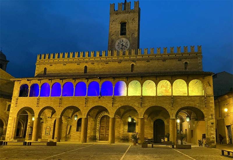 OFFIDA – Sono tante le iniziative messe in campo dall’Amministrazione comunale per far sentire la proprio vicinanza al popolo ucraino in questo momento drammatico. Offida aderisce così convintamente all’iniziativa di Ali, Autonomie Locali Italiane, “Per la pace, per l’Ucraina”, mobilitandosi contro l’invasione da parte della Russia. Un modo per far sentire al popolo ucraino la vicinanza della città e la più forte condanna morale e politica di Putin e alle sue azioni di guerra. L’appuntamento per tutti e per soprattutto i bambini è in Piazza del Popolo, domenica 13 marzo alle ore 12. Inoltre, da lunedì sera la loggetta del Palazzo Municipale è stata illuminata con i colori della bandiera Ucraina, un ulteriore segnale di luce dalla comunità offidana per esprimere solidarietà a quel popolo martoriato.