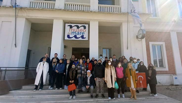 SAN BENEDETTO DEL TRONTO – Prosegue la visita della Riviera delle Palme degli studenti belgi, lituani e turchi che partecipano al progetto Erasmus+ sul tema della parità di genere e che vede la città di San Benedetto del Tronto rappresentata dall’Istituto Alberghiero “Buscemi”. Questa mattina le tre delegazioni ospiti, composte ciascuna da cinque studenti e due docenti, e gli omologhi sambenedettesi hanno visitato il Museo del Mare, soffermandosi ad ammirare le collezioni delle varie sezioni in cui è articolato il Museo. Nella giornata di ieri ragazzi e docenti erano state ricevute in Municipio dal sindaco Antonio Spazzafumo e dall’assessore alla cultura, istruzione e pari opportunità Pasqualina Lazzari. Successivamente per poi recarsi in visita al vecchio incasato.