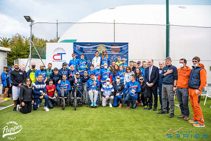 Cerimonia di premiazioni emozionante alla presenza di Fabio Luna (Presidente CONI Marche), Cinzia Campanelli (Assessore Sport e Turismo San Benedetto del Tronto), Mario Poletti (Direttore Tecnico Paratriathlon) e Filippo Caporali (Consigliere FITri).