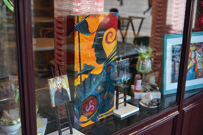 «Dante Fazzini – ha dichiarato il presidente Carducci – amava dipingere qui. Si sentiva ispirato, al Caffè Meletti, che è diventato anche luogo d’arte al servizio dei cittadini. Con lui ho provato quel senso di appartenenza, a queste stanze, a questa città, che come Cda non smetteremo di voler trasmettere all’esterno. Con una targa lo ricorderemo per sempre». Le opere di Dante Fazzini sono state distribuite tra vetrine, all’interno della sala, lungo le scale ed al primo piano, formando così un percorso che mette in evidenza i tanti modi di espressone del pittore ascolano che aveva un eclettismo straordinario: ritratti, micro tele, anche marionette, luoghi della città, visioni oniriche e tanti altri spunti, tutti in un cromatismo avvolgente. Le sue sono opere che catturano immediatamente chi le osserva.