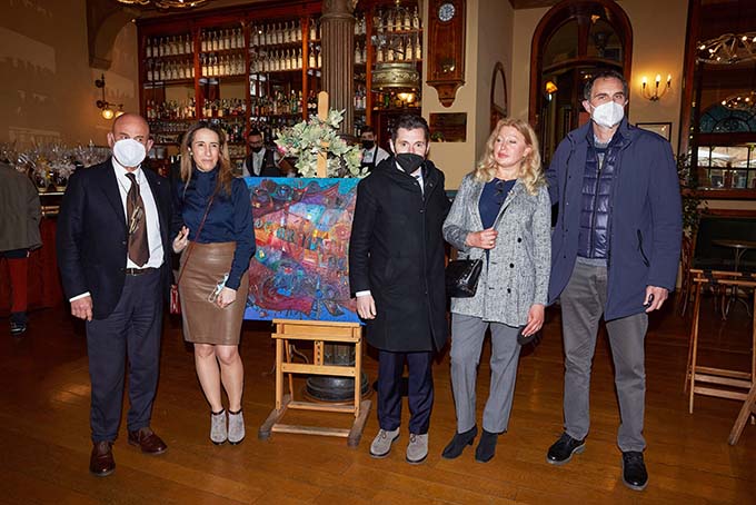 ASCOLI PICENO – Una targa permanente ricorderà, all’interno del Caffè Meletti di Ascoli, il pittore ascolano Dante Fazzini, che nello storico locale di piazza del Popolo, in due occasioni, nel 2005 e nel 2018, aveva dipinto dal vivo i ritratti di tanti personaggi del capoluogo piceno. Lo ha annunciato il presidente della Caffè Meletti srl, Longino Carducci, durante l’inaugurazione del percorso espositivo di opere dell’artista, scomparso un anno fa (il 4 aprile), all’interno dello stesso Caffè Meletti. Nel corso della cerimonia ci sono stati momenti di forte commozione. Hanno partecipato, oltre al presidente Carducci ed al vicepresidente e direttore artistico, Anna Monini, il sindaco di Ascoli Marco Fioravanti, l’assessore comunale alla cultura Donatella Ferretti, la vedova Elena Linnikova Fazzini, che ha messo a disposizione le opere, Goffredo Zucchetti, amico fraterno dello scomparso e tanti altri amici.
