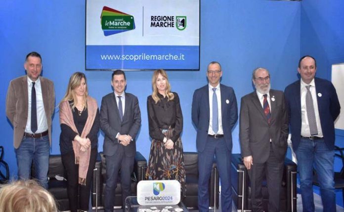 Le Marche sul gradino più alto nella corsa per la Capitale italiana della cultura 2024: Pesaro si fregia del titolo più prestigioso grazie all’ottima progettualità improntata su natura e cultura, mentre Ascoli Piceno è arrivata a un passo dalla vittoria, piazzandosi nella “top ten” delle finaliste. Unica regione italiana, le Marche sono state in grado di schierare ben due capoluoghi. E alla Bit di Milano, le Marche hanno proposto e presentato le due realtà che traineranno la stagione turistica ispirata alla cultura. Presso il padiglione della Regione, allestito a fieramilanocity, l’assessore Giorgia Latini, insieme ai sindaci Matteo Ricci (Pesaro) e Marco Fioravanti (Ascoli), ai presidenti delle Province Giuseppe Paolini (Pesaro e Urbino) e Sergio Loggi (Ascoli Piceno), ha presentato “le destinazioni culturali delle Marche vincenti”.