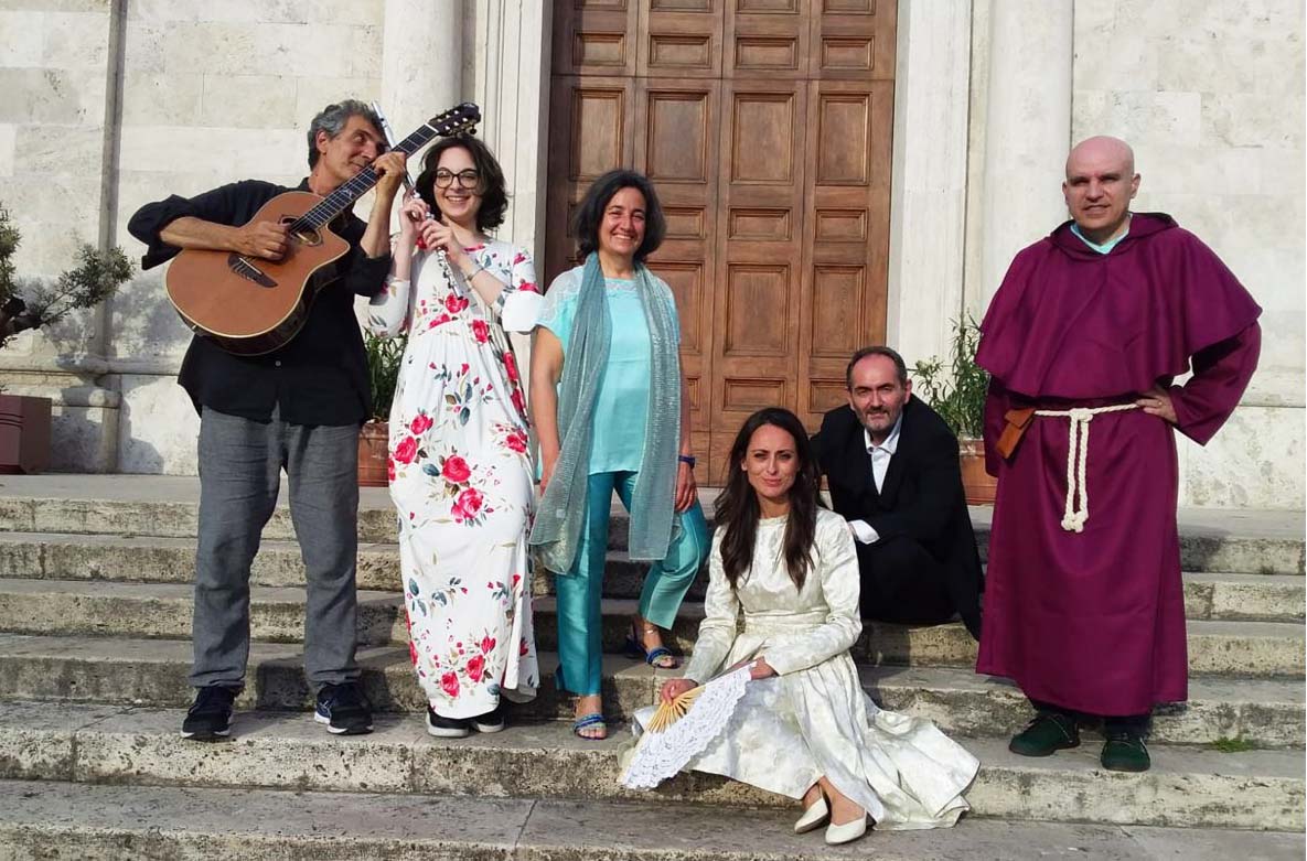 Ed è proprio partendo da questo presupposto che è stato costruito un vero e proprio copione teatrale, che alterna momenti comico-brillanti di recitazione (affidati a Ettore Picardi e Rosalia Della Gatta) a canzoni (sette classiche, più due inediti: Pianefforte ‘e notte di Di Giacomo messa in musica da Francesco Tranquilli e Addo ‘o scuro, versione in napoletano di Greensleeves scritta da Ettore Picardi). «Ci siamo ben tenuti lontani, però, dalla tradizionale forma di teatro popolare napoletano di fine Ottocento, la “sceneggiata”, una sorta di operetta di stile verista e dal finale spesso tragico. – precisa Tranquilli – L’ispirazione è stata invece la storia, davvero romanzesca, di Edoardo Nicolardi (l’autore di Voce ‘e notte) e del suo amore in apparenza impossibile per la bellissima Anna Rossi». Alla chitarra c’è ‘o Maestro Antonio Miceli, anche lui napoletano doc pur se marchigiano di adozione, e al flauto la Ninfa Naiade Eleonora Nobilioni. I due interpreti vocali sono Francesco Tranquilli (Edoardo) e Valentina Pacetti nel duplice ruolo di Reginella/Bammenella e Anna Rossi. Le canzoni che ascolteremo durante lo spettacolo sono Te voglio bene assaje (1835), Reginella (1917), Bammenella (1918), Dicitencello vuje (1930), Pianefforte ‘e notte (2020), Voce ‘e notte (1903), Passione (1934), Addo ‘o scuro (1580 ca.-2022) Era de maggio (1885).