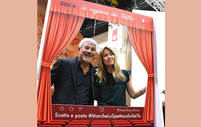 «I teatri marchigiani – ha evidenziato Pino Insegno, ospite dello stand regionale per la presentazione del Festival MArCHESTORIE 2022 – rappresentano un patrimonio internazionale importante. Nelle Marche ho trovato persone che vogliono lavorare assieme, attraverso un percorso integrato, per dare maggiore forza alla regione”. L’assessore Latini ha quindi rimarcato come “i teatri fanno parte della nostra identità. Abbiamo più teatri di tutta l’Italia del sud, rispetto al numero degli abitanti e al numero dei comuni. Significa che i teatri fanno parte della nostra identità, che sono da sempre un punto di riferimento della comunità. Quindi stiamo lavorando per fare ritornare il teatro al centro delle politiche di crescita regionali. Ci tenevamo che lo stand avesse come sfondo e come scenografia il teatro proprio per dare questo messaggio al resto de paese”.
