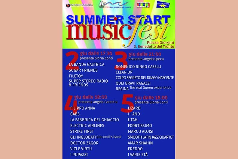 SAN BENEDETTO DEL TRONTO – Nelle giornate di giovedì 2, venerdì 3, sabato 4 e domenica 5 giugno, la Rotonda Giorgini nel centro di San Benedetto del Tronto sarà la cornice per il Summer Start Music Fest, una “quattro giorni” di concerti che vedrà protagonisti artisti e complessi musicali provenienti dal territorio. L’iniziativa è stata organizzata dall’Amministrazione comunale con la collaborazione di Musicomania, la partecipazione dell’associazione “Arte Viva” e il patrocinio di “AssoArtisti Adriatico”. L’evento aprirà giovedì 2 giugno, dalle ore 17.45, con La Band Gastrica LBG, la tribute band di Zucchero “Sugar Friends”, File Toy (Sun Bitch) e i Super Stereo Radio & Friends. La serata sarà presentata da Gloria Conti. Venerdì 3 giugno lo spettacolo ricomincia alle 21 con Domenico Ringo Caselli, Clean Up, Colo Segreto del Drago Nascente, Quei Bravi Ragazzi e la tribute band dei Queen, Regina. Conduce la serata Angela Speca. Sabato 4 giugno piazza Giorgini si animerà già dalle 18 con Filippo Anna, Gabs, La Fabbrica del Ghiaccio, Electric Airlines, Strike First, la band della Scuola di Musica “Giocondi” Gli Inglobati, Doctor Zagor, la tribute band di Vasco Rossi Vizi e Virtù e i Pupazzi. Presenta la serata il cabarettista Angelo Carestia. Infine, per l’ultimo giorno di concerti, domenica 5 giugno a partire dalle 18 si esibiranno sul palco la band di musica d’insieme dell’Accademia Musicale Lizard, J-And, lo Smooth Latin Jazz Quartet, Marco Aloisi, Gloria Conti, Foortissimo Rap Hip Hop, Utah, Amar Shain, Freddo e i Varie Età. Presenta la serata conclusiva Gloria Conti. La partecipazione alle quattro serate di concerti è completamente gratuita. «L’Amministrazione comunale ha voluto dedicare l’inizio dell’estate 2022, la prima vera estate priva di restrizioni dopo due anni di regolamenti anti Covid-19, agli artisti del nostro territorio. – commenta l’assessore al turismo Cinzia Campanelli – Il Summer Start Music Fest, come suggerisce il nome, è il primo evento dell’estate sambenedettese, l’apertura della bella stagione. Era un momento già previsto per il Capodanno ma, che a causa delle restrizioni sopraggiunte, abbiamo dovuto rinviare non appena le condizioni avessero consentito che potesse essere vissuto in modo più libero. Ora manteniamo l’impegno preso nel dedicare un evento alle migliori espressioni della musica locale, convinti che saprà catturare l’interesse di tanti, tutti coloro che si uniranno a noi, in piazza Giorgini, all’insegna della buona musica e del divertimento. Mi auguro che questa iniziativa possa essere di buon auspicio per un’estate 2022 davvero entusiasmante per tutti».