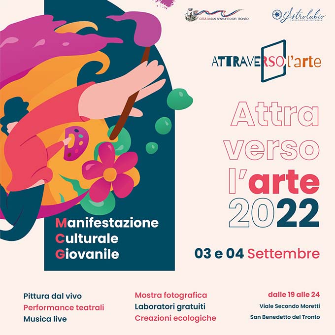SAN BENEDETTO DEL TRONTO – Anche quest’anno l’Associazione Culturale L’Astrolabio, con il patrocinio dal Comune di San Benedetto del Tronto e l’assessorato alla cultura, presenta una nuova edizione dell’evento “Attraverso l’Arte 2022”, in una versione più estesa e con la partecipazione di altre associazioni, per una vera passeggiata nei più vari e molteplici volti dell’arte. L’evento si terrà il 3 e il 4 settembre, dalle ore 19 alle 24, in Viale Secondo Moretti e vie perpendicolari limitrofe nel pieno centro di San Benedetto del Tronto. Il tema della manifestazione sarà “La Cura”, che verrà rappresentata nelle varie forme d’arte. In una delle varie postazioni potrete assistere al Live Painting degli artisti contemporanei William Kaine, Deborah Mignini, Jackeline Sanchez Aguado, i quali saranno accompagnati dalla musica live di Vitelli, musicista contemporaneo locale a cura di Prima Persona Plurale.