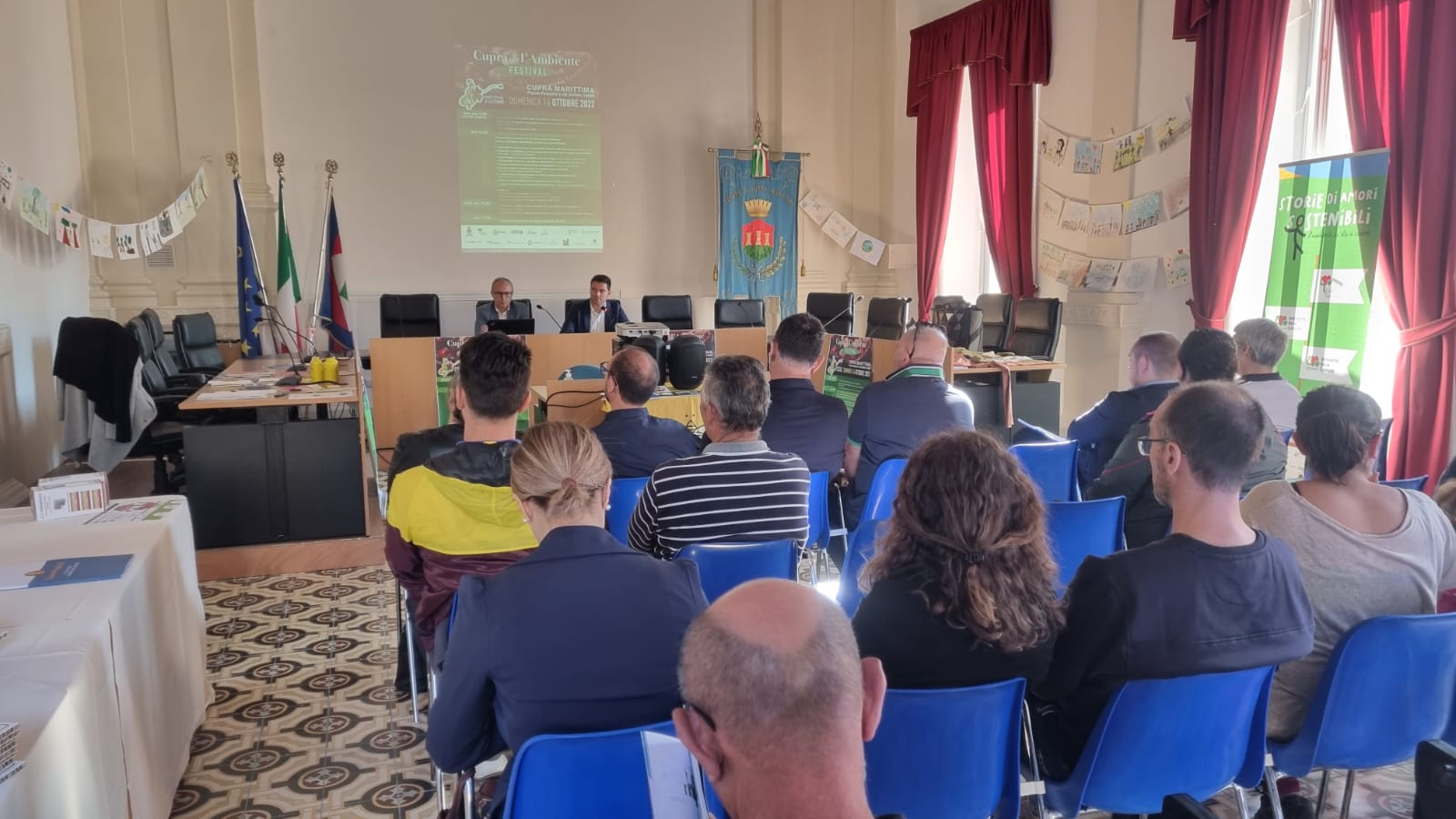 CUPRA MARITTIMA – Si è svolto ieri mattina, nella rinnovata Sala Consiliare del Comune di Cupra Marittima, il convegno #10PassiVersoLaSostenibilità, realizzato nell’ambito del “Cupra per l’ambiente festival – Biofestival d’autunno” con mostra mercato di prodotti biologici, promosso dal Comune di Cupra Marittima, Aiab e Marche a Rifiuti Zero. In apertura il sindaco Alessio Piersimoni e il vicesindaco Lucio Spina hanno sottolineato come la sostenibilità sia una tematica urgente, resa evidente dall’attuale crisi energetica. L’Amministrazione comunale intende quindi, attraverso il progetto Cupra per l’ambiente e il relativo convegno, gettare semi di attenzione su come realizzare concretamente un nuovo modello di sviluppo. Ma l’impegno del Comune su questi temi prevede anche la sostituzione dell’illuminazione pubblica per ridurre i consumi e l’inquinamento, l’efficientamento energetico degli edifici comunali attraverso l’installazione di un impianto fotovoltaico, la raccolta differenziata e la lotta all’abbandono dei rifiuti, per la tutela dei cittadini e dei turisti.