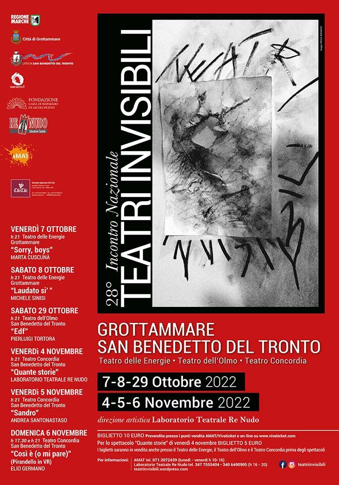 Teatri Invisibili, Cinì: «A fine ottobre e ad inizio novembre il festival torna dalla porta principale a San Benedetto del Tronto, dopo anni di ingiustificato ostracismo» –