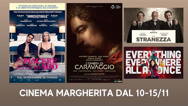 CUPRA MARITTIMA – Questa settimana il Cinema Margherita desidera esordire con un ringraziamento: «Grazie agli spettatori, a quelli più fedeli, affezionati della sala e a quelli che si vi sono affacciati per la prima volta. Un grazie doveroso per la calorosa presenza; lo staff è orgoglioso di poter riportare i numeri del weekend: quasi 700 presenze(688). 160 presenze per La Stranezza e 395 per L’ombra di Caravaggio e 135 La pantera delle nevi. Questi dati non possono che dare soddisfazione, perché interpretati come un segnale di speranza e di fiducia nei confronti della visione in sala e nei confronti del cinema italiano. Soddisfazione nel vedere le persone riempire la sala e lasciarsi affascinare dalla creazione geniale di Pirandello e dalle inquietudini di Caravaggio». Motivo per cui è stato deciso di riproporre entrambi i film, L’ombra di Caravaggio e La Stranezza, anche questa settimana. Non mancheranno le nuove uscite, come Il piacere è tutto mio, brillante commedia della regista Sophie Hyde che, tra battute serrate e momenti esilaranti, rovescia gli stereotipi legati al genere e all’età parlando di ascolto e condivisione. La grande novità della settimana arriva con Everything Everywhere all at once, definito un “vortice anarchico di generi”, un film che è tantissimi film insieme, che mette insieme il kung fu e il multiverso, le questioni identitarie delle comunità asiatiche-americane con i problemi familiari, Matrix e il cinema di Hong Kong. Un invito al pubblico a farsi trascinare da questo folle delirio. E commuoversi.