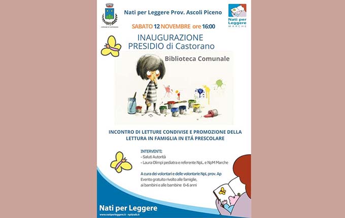 CASTORANO – Sabato 12 novembre, alle ore 16, sarà inaugurato il nuovo presidio di “Nati per Leggere” a Castorano. Sarà la Biblioteca comunale di via Roma a ospitare il primo dei tanti eventi che coinvolgeranno bambini da 0 a 6 anni e le loro famiglie. Ingresso gratuito. «Siamo orgogliosi di inaugurare questo nuovo presidio – commenta il sindaco Graziano Fanesi – Ci stiamo lavorando da qualche mese e sabato presenteremo il tutto alla comunità, sicuri di dare un servizio in più alle famiglie, di Castorano e dei territorio limitrofi, soprattutto quelle con i bimbi più piccolini». «All’inaugurazione sarà presente la pediatra ascolana Laura Olimpi – commenta Maura Massi dell’associazione – che è la referente Marche di “Nati per Leggere” e “Nati per la Musica”. Le volontarie dell’associazione faranno letture a bassa voce. In questo tipo di attività è fondamentale il coinvolgimento della famiglia per questo in nostro invito è rivolto anche ai genitori e non solo ai bambini». “Nati per Leggere” è un programma nazionale, sviluppato assieme all’Associazione Culturale Pediatri, l’Associazione Italiana Biblioteche e il Centro per la Salute del Bambino, che propone gratuitamente alle famiglie con bambini fino a 6 anni, attività di lettura che costituiscono un’esperienza importante per lo sviluppo cognitivo ed emotivo dei bambini e per lo sviluppo delle capacità dei genitori di crescere con i loro figli. «Speriamo in una buona affluenza, ci sarà un omaggio per ogni partecipante – conclude il consigliere con delega alla scuola, Nadia Gregori – Nel prossimo futuro cercheremo di dare una cadenza settimanale al presidio. La nostra Biblioteca l’abbiamo inaugurata per renderla un luogo vivo, pieno di libri e di attività. Per ora ci siamo occupati dei piccoli con “Nati per Leggere”, ma stiamo cercando di coinvolgere altre associazioni e non solo di Castorano».