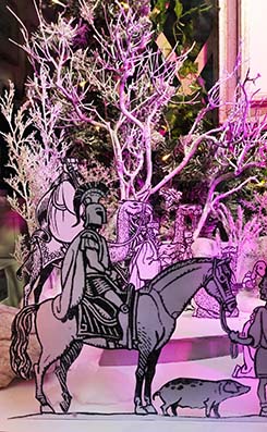 «Ogni volta che mi soffermo davanti a quest’opera – afferma Cellini – mi sembra di rivedere Andrea mentre traccia le prime linee direttamente a pennarello, iniziando dallo zoccolo del cavallo e dicendo: “Sto passando sul fiume Tesino, sto venendo a Ripa a trovarti! ”. Sullo sfondo, infatti, c’è il profilo di Ripatransone, che lui ha riprodotto all’istante da un mio disegno». In esposizione c’è anche il Presepe Artistico, realizzato in carta e cartone da Cellini, che ripropone da un punto di vista tridimensionale un disegno di Pazienza del 1986, in cui l’artista ha rappresentato, a suo modo, i personaggi del presepe. La scelta di esporle proprio in questo periodo non è casuale, ma legata al fatto che il famoso fumettista era solito venire a trovare il suo amico Eugenio durante le festività natalizie. Era un’amicizia profonda e durature quella che legava Cellini, Pazienza, Tanino Liberatore e tanti altri compagni di collegio e di Liceo artistico a Pescara. Amicizie indissolubili che hanno il potere di varcare i limiti del tempo, restando per sempre vive nel cuore di chi resta.