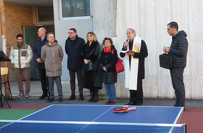 SAN BENEDETTO DEL TRONTO – La Comunità Scolastica del Liceo Classico “Leopardi” ha portato al termine un importante progetto sostenibile, un campo sportivo polifunzionale all’aperto. Un valore aggiunto all’offerta formativa della storica istituzione scolastica che ha  fondato le sue radici sul territorio oltre mezzo secolo fa. La cerimonia di inaugurazione si è svolta lunedì 28 novembre, moderata dal dirigente scolastico Maurilio Piergallini, affiancato dal collaboratore Giovanni Simonetti, docente di Educazione Fisica e allenatore della Faro Basket. Un sentito ringraziamento è andato dal dirigente all’ingegnere Fabio Pagliarini della Provincia di Ascoli Piceno per il suo competente supporto. Hanno presenziato il Vescovo Mons.Carlo Bresciani, il Presidente della Provincia di Ascoli Piceno Sergio Loggi, l’assessora alla cultura Lina Lazzari, l’assessore comunale con delega sociale e politiche giovanile Andrea Sanguigni, la consigliera provinciale con delega alle strutture scolastiche Luciana Barlocci, il presidente del Faro Basket Giovanni Marzetti.