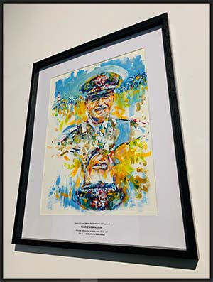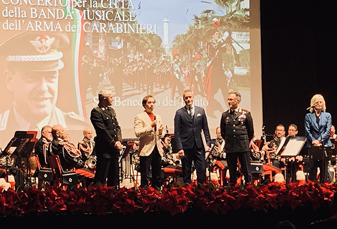 Vespasiani ha poi parlato della simbologia del Faro nell’immaginario comune e delle Palme nella tradizione cristiana, che circondano il Generale nel ritratto, a sottolineare le qualità della persona. Ed ha concluso rimarcando che l’arte a cui si riferisce e di cui prova con umiltà a farsi interprete è quella in grado di portare ad una evoluzione di coscienza, ad una trasformazione luminosa del proprio sé. Alla presenza del Generale Salvatore Cagnazzo, Comandante della Legione Marche, di numerose autorità civili e militari e con oltre dieci brani di repertorio, la Banda dei Carabinieri ha coronato al meglio una serata dedicata alla memoria, che il sindaco Antonio Spazzafumo non ha esitato a definire storica per la Città e che solo le arti, sanno rendere davvero “memorabile”.