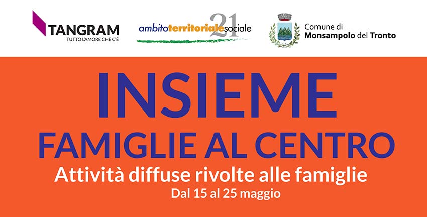 MONSAMPOLO DEL TRONTO – Il Comune di Monsampolo del Tronto dal 15 al 25 maggio ospita la prima edizione di “Insieme famiglie al centro – attività diffuse rivolte alla famiglia”, un vero e proprio festival della famiglia e dell’educazione, realizzato grazie al contributo dell’Ambito Territoriale Sociale 21 e in collaborazione con le cooperative Tangram e Abilita, l’Associazione Michele per tutti onlus, l’Associazione Stelle a Colori, la cooperativa sociale Il Melograno, e i presidi provinciali di Nati per Leggere e di Nati per la Musica. Una festa per genitori e figli con un ricco programma e l’opportunità di incontrarsi e conoscere le offerte e i servizi presenti sul territorio. “Insieme famiglie al centro – attività diffuse rivolte alla famiglia” rappresenta un’ulteriore opportunità per Monsampolo, che arriva dopo l’istituzione della nuova Sezione Primavera del febbraio scorso e della recente adesione al protocollo nazionale di “Nati per Leggere”, per promuovere la lettura ad alta voce per bambini di età compresa tra 0 e 6 anni, di prossima attivazione nella scuola dell’infanzia di Stella. Il festival prenderà il via lunedì 15 maggio, proprio in occasione della Giornata Internazionale delle famiglie e si svilupperà per dieci giorni, con iniziative ed eventi su tutto il territorio comunale.