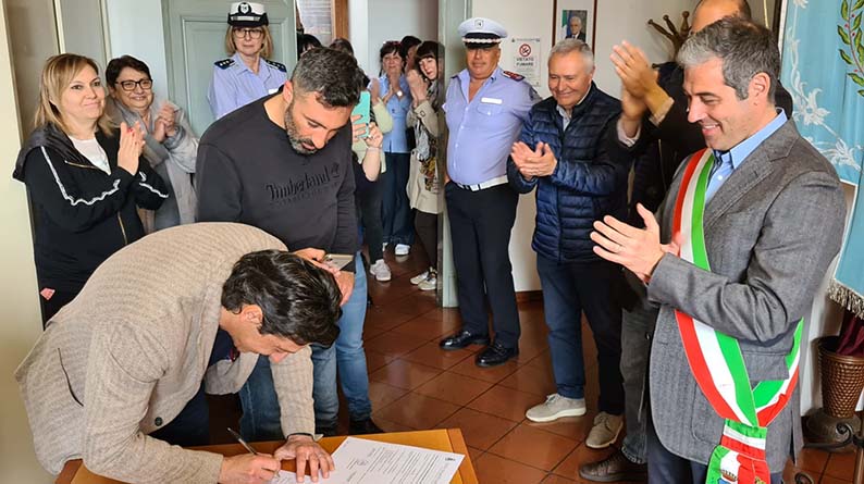 GROTTAMMARE – É iniziato poco dopo le ore 11 di questa mattina il mandato del sindaco Alessandro Rocchi. La proclamazione del nuovo primo cittadino, emerso dalle consultazioni elettorali di domenica 14 e lunedì 15 maggio, si è svolta nella Sala di Rappresentanza di Palazzo Ravenna, dove si è riunito l’Ufficio centrale elettorale nominato dal presidente del Tribunale di Fermo dott. Bruno Castagnoli. L’organo collegiale è presieduto dal Gop Patrizia Perrone. Le formalità relative al passaggio di consegne tra il sindaco uscente Enrico Piergallini e Alessandro Rocchi è avvenuta qualche minuto dopo, nell’ufficio del Segretario generale dell’ente, dott.ssa Stefania Pasqualini. Grottammarese doc, 50 anni, già vicesindaco, Alessandro Rocchi è sposato e padre di due figli. Laureato in Economia e Commercio all’Università Politecnica delle Marche è impiegato all’Agenzia delle Entrate da quasi 20 anni. É attivo nell’associazionismo sin da ragazzino, trovando nella comunità locale vari spunti per impegnarsi attivamente: è tra i fondatori di numerose associazioni (Circolo velico “Le Grotte”, Comitato Quartiere Stazione, Sede comunale Avis, Polisportiva Le Grotte), fa parte del gruppo comunale di Protezione civile ed è capo scout del Gruppo Grottammare 1. Il suo contributo alla vita amministrativa della città non è recente. Inizia nel 2008 dagli scranni della Sala Consiliare con il ruolo di consigliere e, poi, di assessore con delega al bilancio nel secondo mandato del sindaco Luigi Merli.  Oltre alla carica di vicesindaco, mantiene la delega al Bilancio nei 10 anni successivi del sindaco Enrico Piergallini, che gli affida anche quella alle Risorse umane, ai Lavori pubblici, nel primo mandato, e all’Innovazione, nel secondo. I lavori dell’Ufficio centrale elettorale sono ancora in corso. Al termine, verrà resa nota la composizione del Consiglio comunale. I risultati elettorali sono visibili qui: https://www.comune.grottammare.ap.it/risultati-elezioni-amministrative-del14-e-15-maggio-2023/