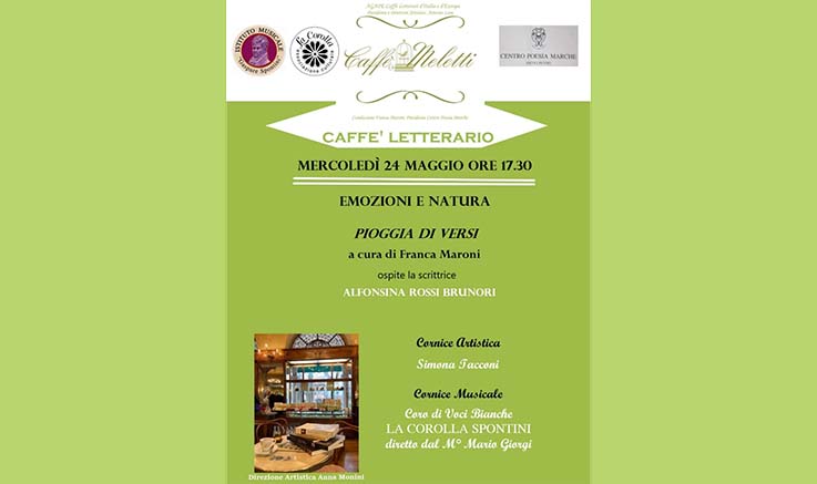ASCOLI PICENO – I bimbi riempiranno di voci e colore il Caffè Meletti di Ascoli, il prossimo mercoledì 24 maggio, alle ore 17,30. É affidata infatti al coro di voci bianche “La Corolla Spontini”, diretto dal maestro Mario Giorgi, dell’omonimo istituto musicale cittadino, la cornice musicale dell’ormai tradizionale pomeriggio letterario, nello storico locale di Piazza del Popolo. La cornice artistica sarà invece di Simona Tacconi. I bambini sono il futuro ma rappresentano anche le radici, care a chi è in là con gli anni e torna con la mente all’infanzia, sempre, dopo percorsi difficili e spesso lontani, cullandosi in nostalgici Il tema della nostalgia è al centro della serata, coordinata come sempre dalla professoressa e poetessa Franca Maroni. Ed avrà tra i protagonisti la scrittrice Alfonsina Rossi Brunori, autrice di un’opera che racconta il momento in cui torna nella sua terra di origine, Montegallo, dopo il sisma del 2016. Ad accompagnare le emozioni della scrittrice, ci sarà la “Pioggia di Versi” di Franca Maroni, sul tema del ricordo, della nostalgia appunto, tema affrontato da molti poeti. «L’importanza delle radici – commenta la professoressa Maroni – e l’attaccamento alla terra d’origine sono anche concetti strettamente legati al linguaggio: non a caso la poesia tocca l’apice del suo potere vibrante nella lingua in cui è stata pensata e messa in versi. Da qui il ruolo importante della traduzione, indispensabile per diffondere il messaggio, nei riguardi della quale, però, è necessario avere molta cura».