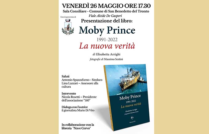SAN BENEDETTO DEL TRONTO – É in programma per venerdì 26 maggio 2023, con inizio alle ore 17.30, nella Sala Consiliare di viale De Gasperi, la presentazione del libro “Moby Prince 1991-2022. La nuova verità” di Elisabetta Arrighi con fotografie di Massimo Sestini. Il libro approfondisce la nuova “verità” sulla tragedia del Moby Prince, quella della presenza di un terzo natante che tagliò la rotta al traghetto. Un’ipotesi già contenuta in alcune carte processuali ma mai approfondita fino a quando non si è messa al lavoro la Commissione d’inchiesta della Camera dei deputati che ha ricostruito una verità storica che va oltre ogni ragionevole dubbio. Questo libro approfondisce le conclusioni della Commissione e chiude un percorso per cercare “verità e giustizia” da sempre invocate dai familiari delle 140 vittime. Oltre ad alcune testimonianze inedite, il volume offre nuovi focus su punti controversi della vicenda, dalle tracce di tritolo all’esplosione a bordo, dalla posizione dell’Agip Abruzzo agli accordi fra gli armatori per gli indennizzi. Fino alla necessità di dare un nome al terzo natante. L’iniziativa, realizzata in collaborazione con la libreria “Nave Cervo”, è curata dall’associazione “Familiari vittime del Moby prince” di cui è presidente il sambenedettese Nicola Rosetti, figlio di Sergio che morì nella sciagura dell’incendio del traghetto. Dopo i saluti istituzionali e l’intervento di Rosetti, dialogherà con l’autrice del libro il giornalista Mario Di Vito.