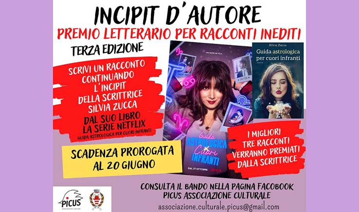 MONTERUBBIANO – Le prime righe sono quelle di un’autrice di successo, le successive sono tutte da creare. Queste le premesse del Premio Letterario “Incipit d’autore”, giunto quest’anno alla terza edizione. L’iniziativa è organizzata dal Comune di Monterubbiano in collaborazione con l’Associazione culturale Picus, il sostegno di Coop Alleanza 3.0 e Confartigianato Macerata-Fermo-Ascoli. Madrina del premio: la scrittrice Silvia Zucca, autrice del romanzo di successo “Guida astrologica per cuori infranti” che ha ispirato l’omonima e seguitissima serie Netflix. Compito dei partecipanti sarà di partire dall’incipit fornito da Silvia Zucca e di scrivere un racconto di massimo 5.000 battute. C’è tempo per partecipare fino al 20 giugno 2023, mentre la premiazione avverrà il 2 settembre presso il suggestivo teatro “Pagani” di Monterubbiano. I racconti verranno giudicati da una giuria tecnica composta dalla sceneggiatrice Valentina Capecci, dagli autori Christina Assouad, Jonathan Arpetti, David Miliozzi, dall’editor e agente letterario Luca Pantanetti, dalla Sindaca con delega alla cultura del Comune di Monterubbiano Meri Marziali. Silvia Zucca sarà Presidente di giuria e premierà i tre migliori racconti. Il bando può essere consultato sulla pagina Facebook Picus Associazione Culturale (https://www.facebook.com/PICUS-Associazione-culturale-102447825528194) o richiesto a associazione.culturale.picus@gmail.com