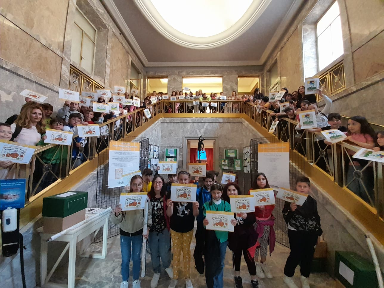 GROTTAMMARE – Si è svolta nei giorni scorsi, presso la Sala Assemblee della Cassa di Risparmio di Fermo (Palazzo Matteucci – Fermo), la premiazione dell’ottava edizione dell’iniziativa “Primo Risparmio Carifermo. Crea il logo!”. Hanno partecipato all’iniziativa 628 alunni provenienti da 40 classi delle Scuole Primarie della Regione Marche. Il Presidente della Carifermo Spa Alberto Palma, il Direttore Generale Ermanno Traini e il Presidente della Fondazione Cassa di Risparmio di Fermo Giorgio Girotti Pucci hanno premiato gli alunni delle cinque classi finaliste, complimentandosi per il lavoro svolto e per i messaggi trasmessi. La commissione, composta da Vissia Lucarelli e dalle persone della Cassa di Risparmio di Fermo Sara Carelli, Carlo Gatta, Laura Marinozzi e Davide Rao, dopo aver visionato 118 elaborati, ha assegnato il primo premio alla classe IV C della Scuola Primaria (ISC Leopardi) di Grottammare con la seguente motivazione: «Sono stati valutati l’originalità del concetto di risparmio e la metafora con l’arte oltre alla tecnica impiegata: il risultato è un’immagine di immediata comprensione che trasmette, oltre all’importanza, anche la “bellezza” del risparmio».