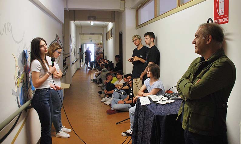 SAN BENEDETTO DEL TRONTO – Nella mattinata di mercoledì 7 giugno, il sindaco Antonio Spazzafumo e l’assessore alle attività produttive Laura Camaioni si sono recati in visita al Liceo Scientifico “Benedetto Rosetti”, dove gli alunni delle classi 5A e 5F hanno presentato il progetto “Synapses”, consistente in un’opera d’arte realizzata lungo tutto il corridoio del pianterreno della struttura scolastica, sul tema delle emozioni – le proprie e quelle dei grandi artisti che hanno fatto la storia. A conclusione della presentazione del progetto, che ha visto peraltro l’esibizione di alcuni studenti in brevi ma significative performance artistiche e riflessioni, il sindaco ha rivolto il suo personale augurio a tutti i ragazzi che, prossimi agli Esami di Stato, si affacciano per la prima volta alla vita adulta.