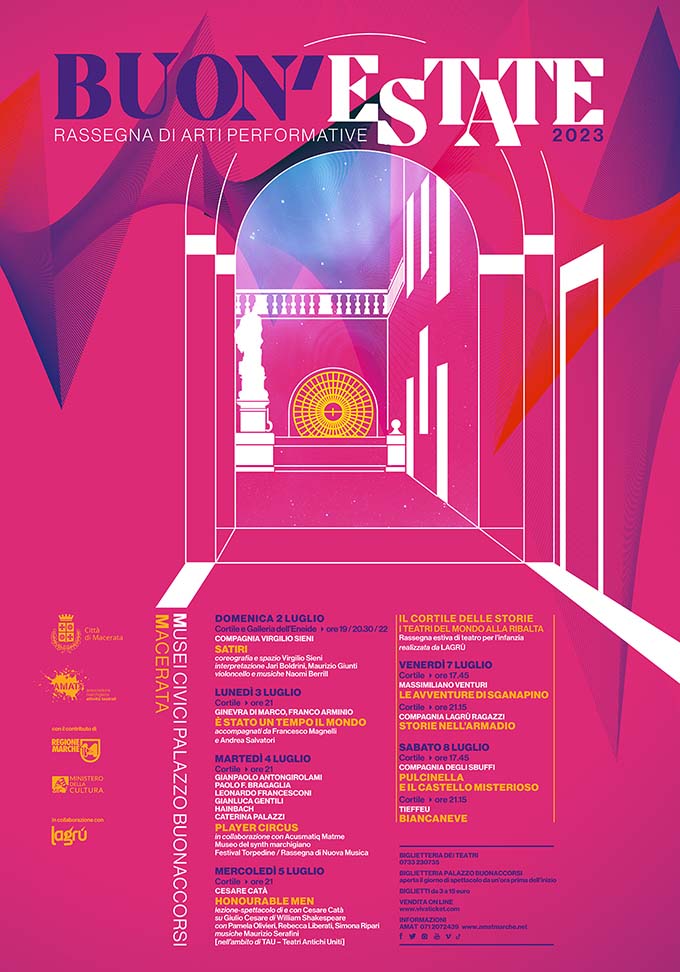 MACERATA – Il mese di luglio nella città di Macerata si apre come un fiore a Palazzo Buonaccorsi con la rassegna di arti performative Buon’Estate che rivela una corolla di spettacoli dal 2 all’8 luglio su iniziativa del Comune di Macerata con l’AMAT, il contributo di Regione Marche e MiC e in collaborazione con Lagrù. «Perché un festival in un museo? Questa una domanda legittima, soprattutto quando la città si vuota e tutti si dirigono verso il mare. La risposta – dichiara l’assessore alla cultura Katiuscia Cassetta – sta nel voler credere che il Museo è la vera piazza culturale della città, che offre stimoli e mescola linguaggi artistici per essere percepito da chi rimane, ma soprattutto da chi sceglie di venire a visitare una città in collina durante le serate estive, un luogo creativo e contemporaneo. Un luogo in cui le opere esposte, il cortile, le stanze si animano e dialogano con gli artisti contemporanei e con un pubblico vario che ci auguriamo potrà così davvero sentirsi accolto da una città che investe in cultura, investe sul presente e soprattutto pensa a un futuro in cui sempre più persone abbiano maggiore sensibilità e consapevolezza del valore del patrimonio artistico a nostra disposizione e di come esso possa ancora arricchirci».