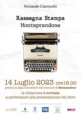 MONTEPRANDONE – É stato presentato questa mattina, giovedì 29 giugno, in conferenza stampa il volume “Rassegna Stampa Monteprandone. Cultura, politica, storia e tradizioni” curato dal dott. Fernando Ciarrocchi, pubblicato da Capponi Editore. Il progetto editoriale è promosso dalla Pro Loco Monteprandone, finanziato dalla Fondazione Carisap e dalla Farmacia San Giacomo, patrocinato dal Comune di Monteprandone, con la collaborazione di Fast Edit e Scritte Pronte. Il libro sarà presentato alla cittadinanza venerdì 14 luglio, alle ore 18, presso la Sala Consiliare del Comune di Monteprandone, in piazza dell’Aquila, nel Borgo Storico.