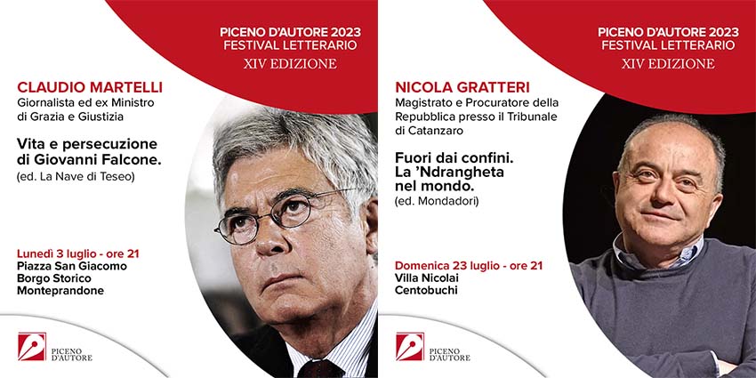 Il gran finale della manifestazione sarà domenica 23 luglio a Villa Nicolai a Centobuchi (anche in caso di pioggia). Ospite della serata il magistrato antimafia Nicola Gratteri. Introdotto dal magistrato Ettore Picardi, Procuratore della Repubblica presso il Tribunale di Teramo, il dott. Gratteri proporrà una testimonianza della sua lunga esperienza come Procuratore della Repubblica del Tribunale di Catanzaro e presenterà il libro “Fuori dai confini. La ‘ndrangheta nel mondo” edito da “Mondadori”. L’evento del 23 luglio con Gratteri è su prenotazione. Dopo l’8 luglio verranno rese note le modalità per riservare i posti a sedere. Per rimanere aggiornati basta seguire la pagina www.facebook.com/picenodautore oppure www.picenodautore.it