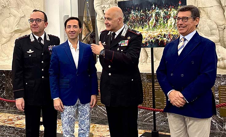 RIPATRANSONE – Si celebra domenica 2 luglio il compleanno di uno dei più autorevoli artisti italiani. Mario Vespasiani è infatti da oltre vent’anni uno dei grandi protagonisti della scena culturale attraverso mostre, conferenze, incontri e pubblicazioni che lo hanno portato ad essere uno dei riferimenti in ambito artistico e di primissimo piano per valore umano. Una carriera costruita passo dopo passo, con una costanza che appartiene alle persone chiamate nella vita ad adempiere una missione importante, la cui opera sembra incarnare gli ideali più nobili dei cavalieri, per via di quell’amore epico verso la propria missione e la donna scelta, verso la fede avuta in dono e le proprie origini. Nonostante i suoi contatti con New York, Londra e Milano ha deciso di aprire lo studio a Ripatransone nelle Marche, splendida città collinare dove hanno vissuto i suoi antenati che si affaccia sul mare della Riviera delle Palme, che ha contribuito a rendere uno dei più dinamici centri d’arte e cultura, che ogni estate si anima col suo festival sul pensiero contemporaneo e durante il resto dell’anno con le anteprime delle mostre che terrà in Italia o all’estero. Nel 2016 ha sposato – alla presenza del Palio dell’Assunta da lui dipinto per la Città di Fermo l’anno precedente – la sua musa storica Mara, con la quale ha avuto Venise Maria e tutti e tre sono apparsi sulla copertina della rivista Exit Urban Magazine insieme a Jeff Koons. In questi giorni è in mostra a Roma con una personale al Museo Storico dell’Arma dei Carabinieri, un evento eccezionale che sottolinea non solo le sue qualità artistiche ma anche morali. È per tutto il mese di luglio protagonista a Catania, presso la Catania Art Gallery, della collettiva dal titolo 360° di Pittura, un’indagine sui maggiori pittori degli ultimi decenni. Note sono le sue attività di solidarietà e tra le più recenti va ricordata la donazione della sua pubblicazione Buena Vi(s)ta – opere ad altro contrasto (un volume pensato per aiutare con l’arte a sviluppare la vista dei neonati) consegnato personalmente ad alcuni reparti pediatrici di vari ospedali, tra cui quello del Policlinico Gemelli di Roma. Libro che si aggiunge ai quarantatré volumi a lui dedicati dal suo esordio. L’esempio di Mario Vespasiani è oggi considerato da tutti come uno dei più brillanti per valore artistico e umano, specchio di un’anima profonda, solare e generosa.