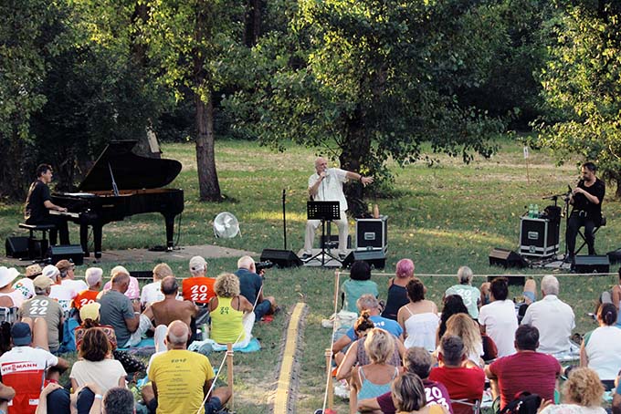 MOGLIANO – Partenza con il botto per RisorgiMarche 2023. Tutto esaurito con 1.000 persone che hanno raggiunto Mogliano per l’apertura della VII edizione del festival ideato da Neri Marcorè e Giambattista Tofoni. Un concerto – quello di Eugenio Finardi, Raffaele Casarano e Mirko Signorile – che ha letteralmente ammaliato il pubblico, tra suggestioni sonore, incursioni nel repertorio del cantautore milanese ed omaggi ad autori come Battiato e Fossati. Nell’incantevole scenario del Parco Fluviale Santa Croce, è andato quindi in scena il primo atto di un cartellone straordinario, che nell’arco di un mese abbraccerà tutte le province marchigiane con proposte di assoluta qualità. Ma a toccare le corde del popolo di RisorgiMarche è stato soprattutto il ringraziamento da parte di Finardi all’Anffas Sibillini, la onlus fondata da un gruppo di famiglie del territorio montano al cui interno vivono persone con disabilità, ed al microbiscottificio Frolla di Osimo, impegnato nell’inserimento lavorativo di ragazzi disabili.