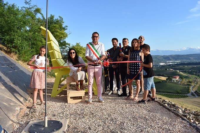 MONTEPRANDONE – È stata inaugurata sabato 5 agosto, la big bench di Monteprandone. La panchina gigante, installata vicino al Lavatoio Comunale, è la numero 311 del circuito nazionale che ha preso il via ad opera del designer americano Chris Bangle e dalla moglie Catherine, coinvolgendo tanti piccoli borghi italiani dove sono arrivate le panchine giganti, divenute attrazione turistica e mezzo di promozione del territorio. Grazie alla collaborazione della Proloco di Monteprandone, con il sostegno di aziende private e artigiani del territorio (Lafinfissi, MDM Interni, Adriatica Verde Playground e Giochi Arredo, Detalux, Falegnameria Angelini e Impresa Malavolta) Monteprandone è entrata a far parte del circuito Big Bench Community Project e, ieri, nonostante l’inclemenza del meteo, ha potuto far festa per l’inaugurazione della sua grande panchina.
