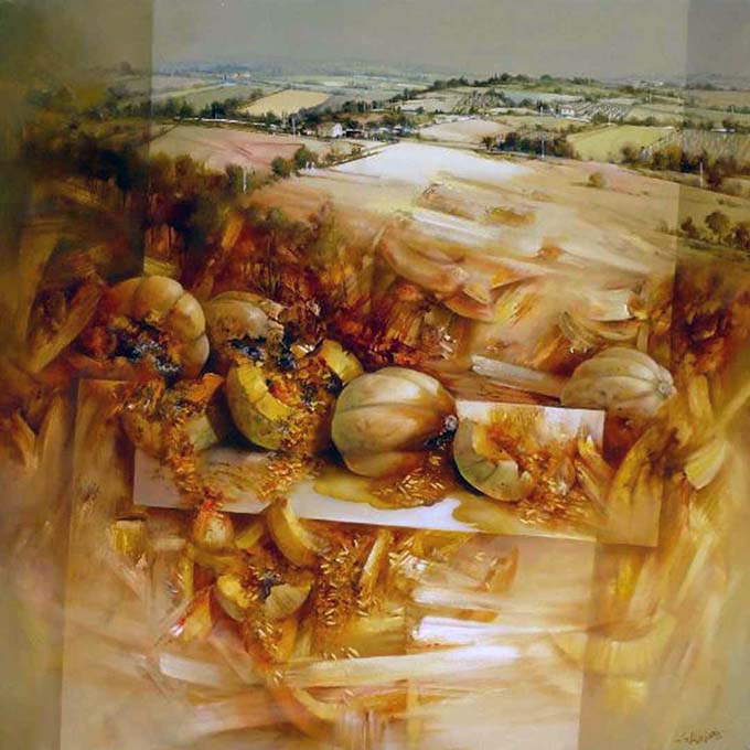 …“La pittura di Alesiani evoca scenari immaginifici, in cui la fantasia dell’autore si mischia e si confonde con gli elementi primari della natura. Le accurate nature morte, alle quali a volte fa da sfondo il paesaggio di terre, raccontano in modo limpido e immediato le emozioni del pittore marchigiano ed evidenzia come la nostalgia e i ricordi deformati dal tempo possano diventare, con l’uso sapiente di morbidi colori, e con il dosaggio della luce e degli elementi formali, una vera e propria sintesi di colore, poesia e armonia.”…